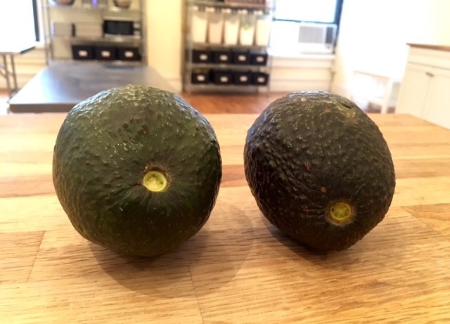 - Depending on the recipe you are making, it may call for a specific texture in your avocado. For example when we make guacamole we look for overripe and extremely soft avocados, not only is the taste superb, but the texture creates a creamy dip. On the other hand when we are making Sushi Rolls we want the avocados to be ripe – but still firm so they hold their shape during the rolling and cutting process. The best way to gauge an avocado is by feeling it for firmness, but you can also see a difference in color when removing the stem, the darker the flesh inside, the more ripe it will be.